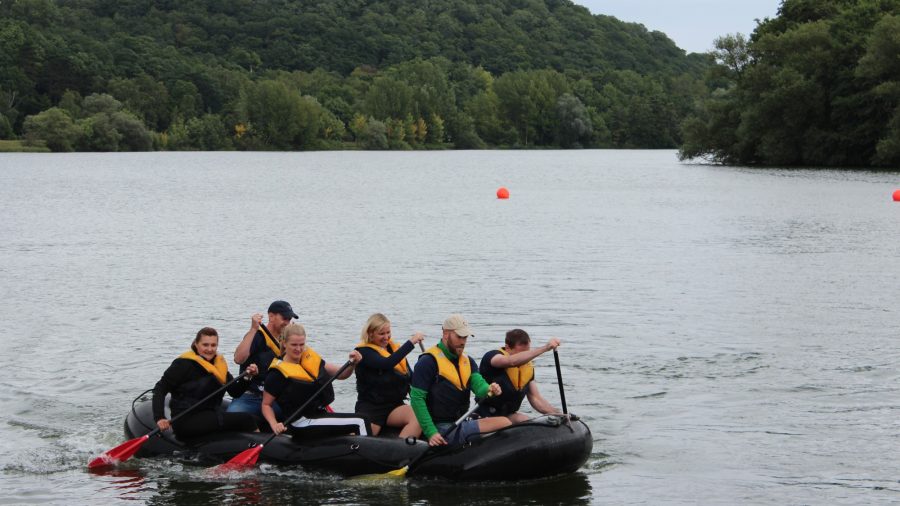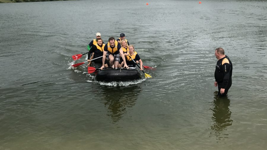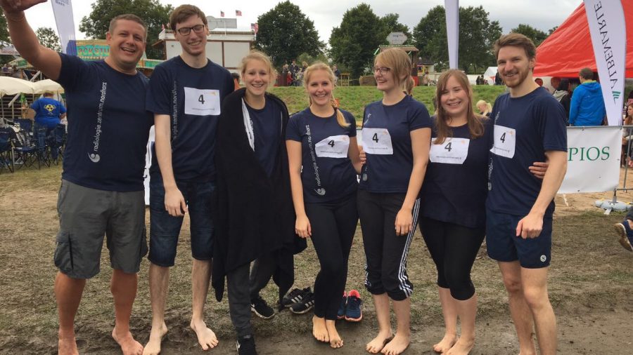 Im Rahmen des Betrieblichen Gesundheitsmanagements nahm am Samstag, 12.08.2017, das radiologie.zentrum.nordharz zum wiederholten Male mit zwei Teams beim 3. Vienenburger Schlauch-bootrennen teil. Angefeuert von zahlreichen Mitarbeitern und Familienangehörigen saßen jeweils 6 Kollegen und Kolleginnen im wahrsten Sinne des Wortes in einem Boot, um gegen diverse Firmen und Einrichtungen aus dem Landkreis Goslar anzutreten. Allen Teilnehmern konnte auch der in diesem Jahr leider wolkenverhangene Himmel den Spaß an dem sportlichen Sommer-Wettkampf nicht verderben.
