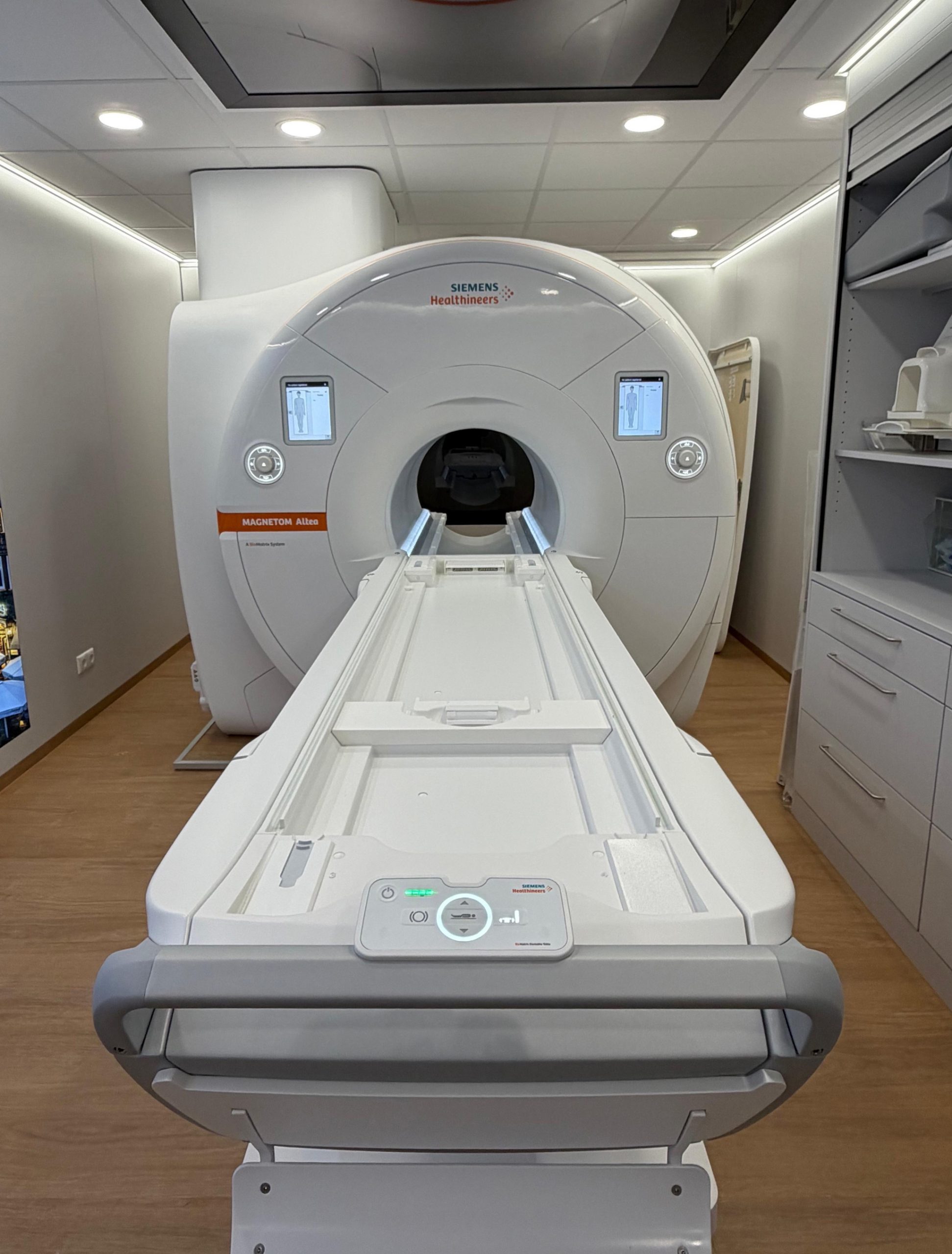 Mit dem Siemens MAGNETOM Altea erweitern wir unsere diagnostischen Möglichkeiten um ein hochmodernes 1,5-Tesla-MRT-System, das modernste Technologie mit einem klar patientenzentrierten Design verbindet. Das System ermöglicht präzise Diagnosen auf höchstem Niveau – schneller, effizienter und deutlich komfortabler für unsere Patientinnen und Patienten.