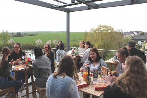 Der Azubi-Tag bestand aus den Themenschwerpunkten „Respektvolle Kommunikation“ sowie „Telefontraining“, welche neben theoretischen Inputs vor allem durch praktische Übungen gefestigt wurden. Die praktischen Übungen bestanden aus Präsentationen, Rollenspielen sowie gestalterischen Aufgaben. Die gemeinsame Mittagspause zwischendurch wurde bei strahlendem Sonnenschein und leckerer Pizza auf unserer Dachterrasse genossen.