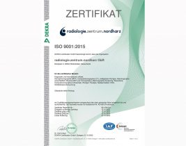 Das radiologie.zentrum.nordharz ist seit Januar 2016 nach ISO 9001:2015 zertifiziert und erfüllt somit die neueste Qualitätsmanagementnorm. Unsere apparative Ausstattung wird während der Installation und des Betriebs regelmäßig durch Strahlenschutzexperten des Landes Niedersachsen kontrolliert.