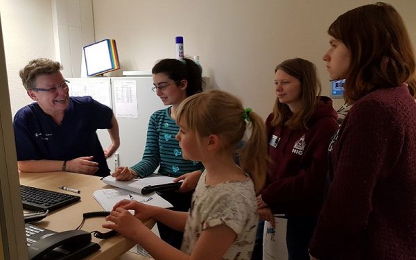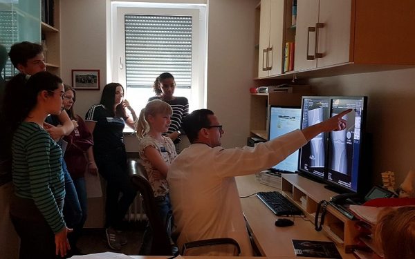 Die 10 Kinder erlebten eine spannende Tour durch die radiologische Praxis und bekamen einen Einblick hinter die Kulissen: Von der Patientenannahme über das Röntgen, das Erkunden unseres Panorama-MRT‘s, der ärztlichen Befundung bis hin zur dazugehörigen Arztbriefschreibung – nichts durfte Fehlen!